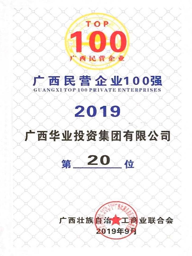 2019年廣西民營(yíng)企業(yè)100強(qiáng)榜第20名