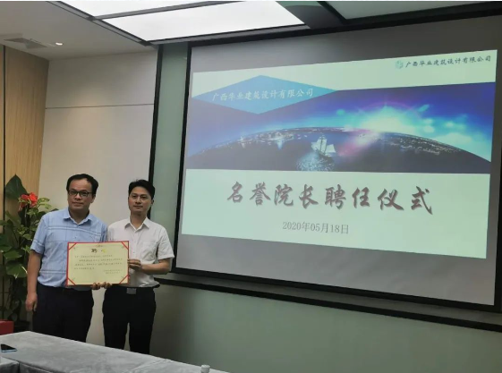 2020年05月18日,廣西華業(yè)建筑設(shè)計(jì)有限公司名譽(yù)院長(zhǎng)——張信貴教授聘任儀式在華業(yè)建筑設(shè)計(jì)有限公司會(huì)議室隆重舉行,華業(yè)集團(tuán)董事長(zhǎng)龍其生、副總裁兼華業(yè)建筑設(shè)計(jì)公司總經(jīng)理龐樹玉應(yīng)邀出席本次活動(dòng)并講話。  &nb..